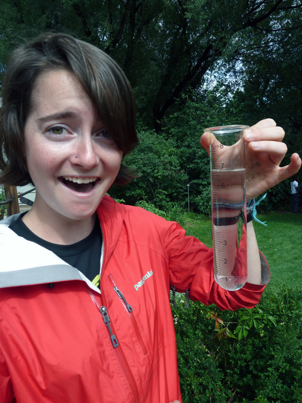 We returned to our professor’s house to view her creek-turned-river. The change from the first time we saw her backyard was immense. Large rapids were moving huge boulders, and all of this occurring right before our eyes in her backyard! Christine had a rain gauge that increased from less than one inch to seven inches overnight! We were able to witness first hand the study of sediment transportation in high-precipitation events.