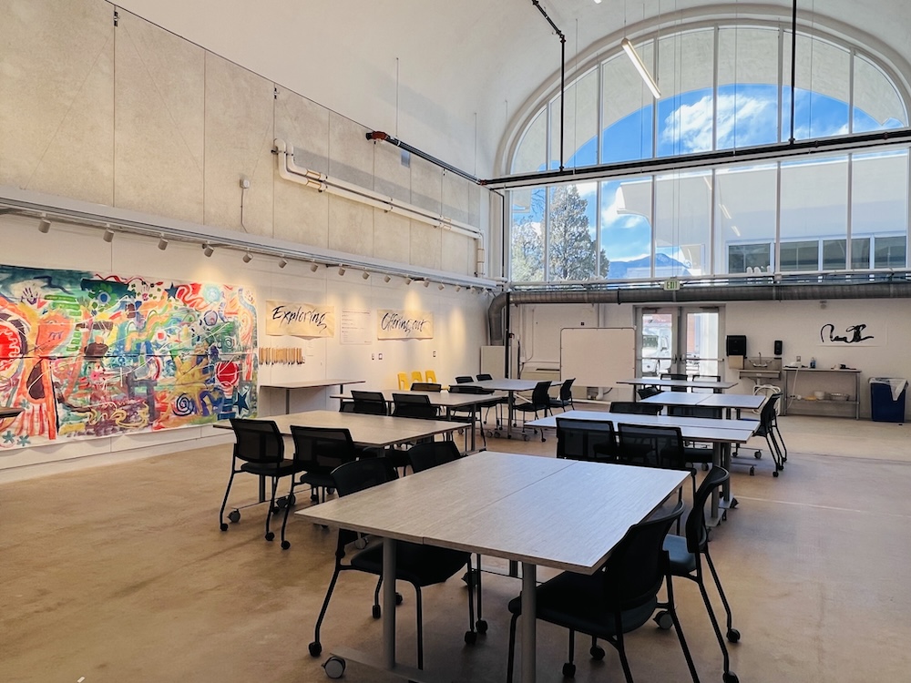 Creativity & Innovation oversees one of the beautiful classrooms in the restored Honnen building. In the high-vaulted, light-filled C&I classroom, faculty will find a wide range of creative materials that they can use in their classes. The process of transforming Honnen Ice Arena into Honnen Arts is detailed in the February, 2025 issue of Architectural Record and includes photos of the classroom.